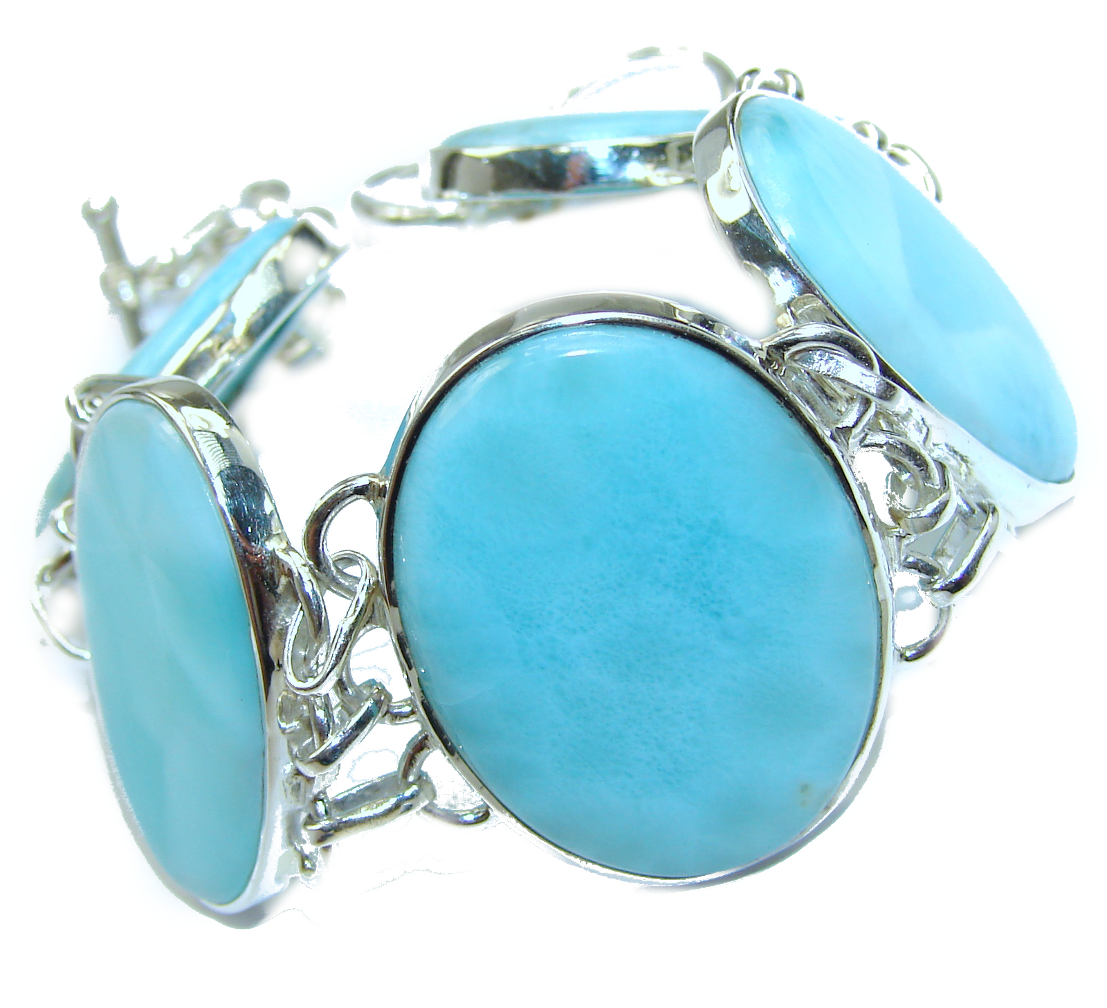 Huge Modern Design authentic Larimar .925 Sterling Silver handcrafted Bracelet