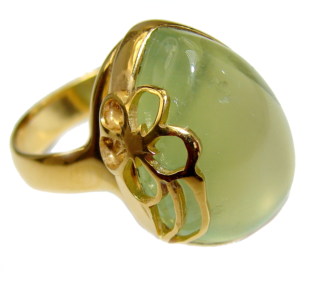 Natural Moss Prehnite 18K Gold over .925 Sterling Silver handmade ring s. 8