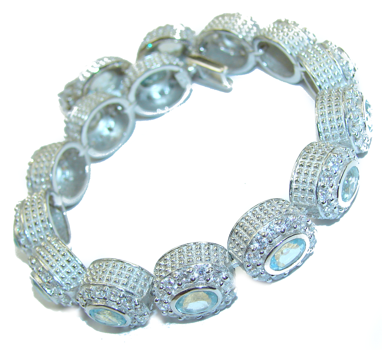 Authentic Swiss Blue Topaz White Topaz .925 Sterling Silver handmade Bracelet