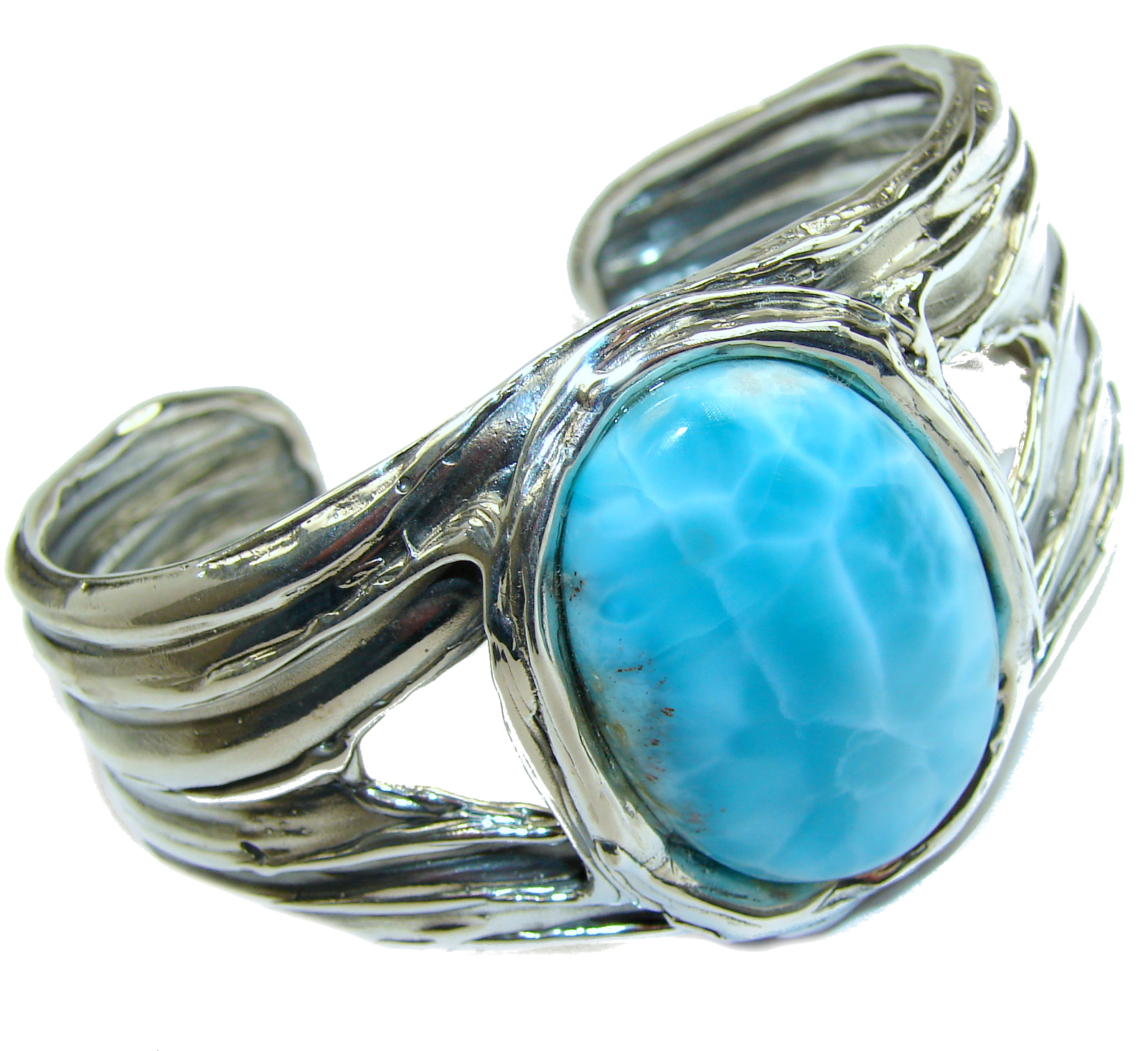 Beauty of Nature Blue Larimar .925 Sterling Silver handcrafted Bracelet / Cuff