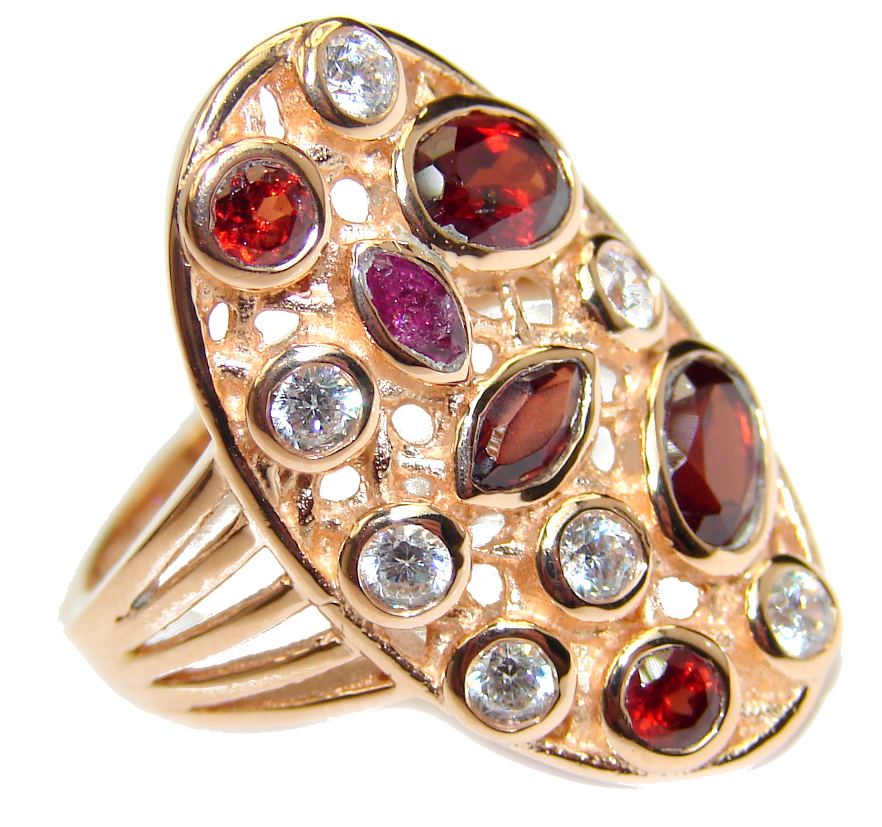 Garnet Topaz 14K Gold over .925 Sterling Silver handmade Cocktail Ring s. 7