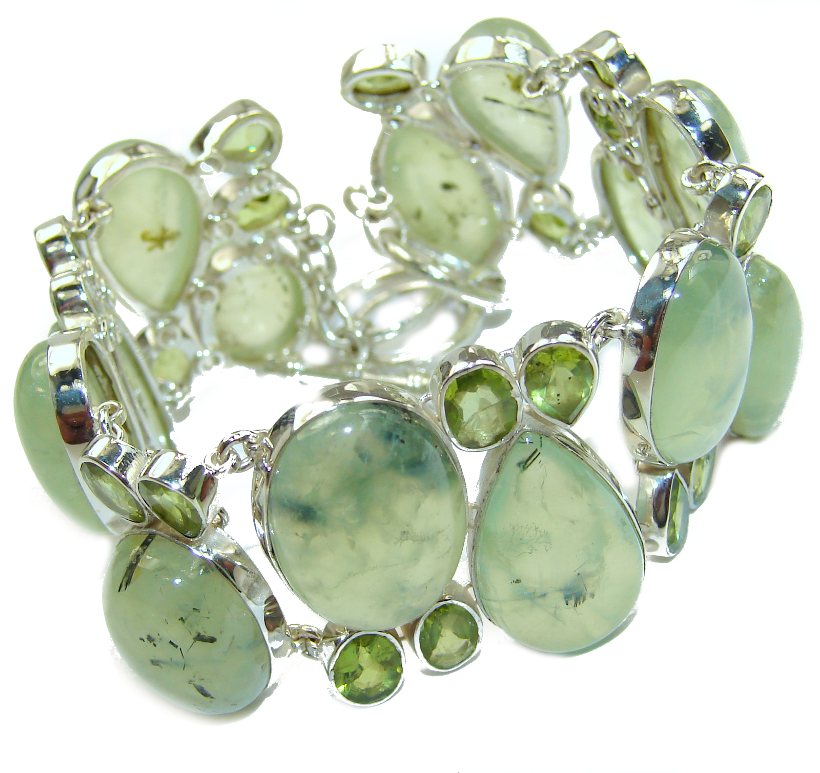 Huge Incredible Genuine Moss Prehnite .925 Sterling Silver handcrafted Bracelet