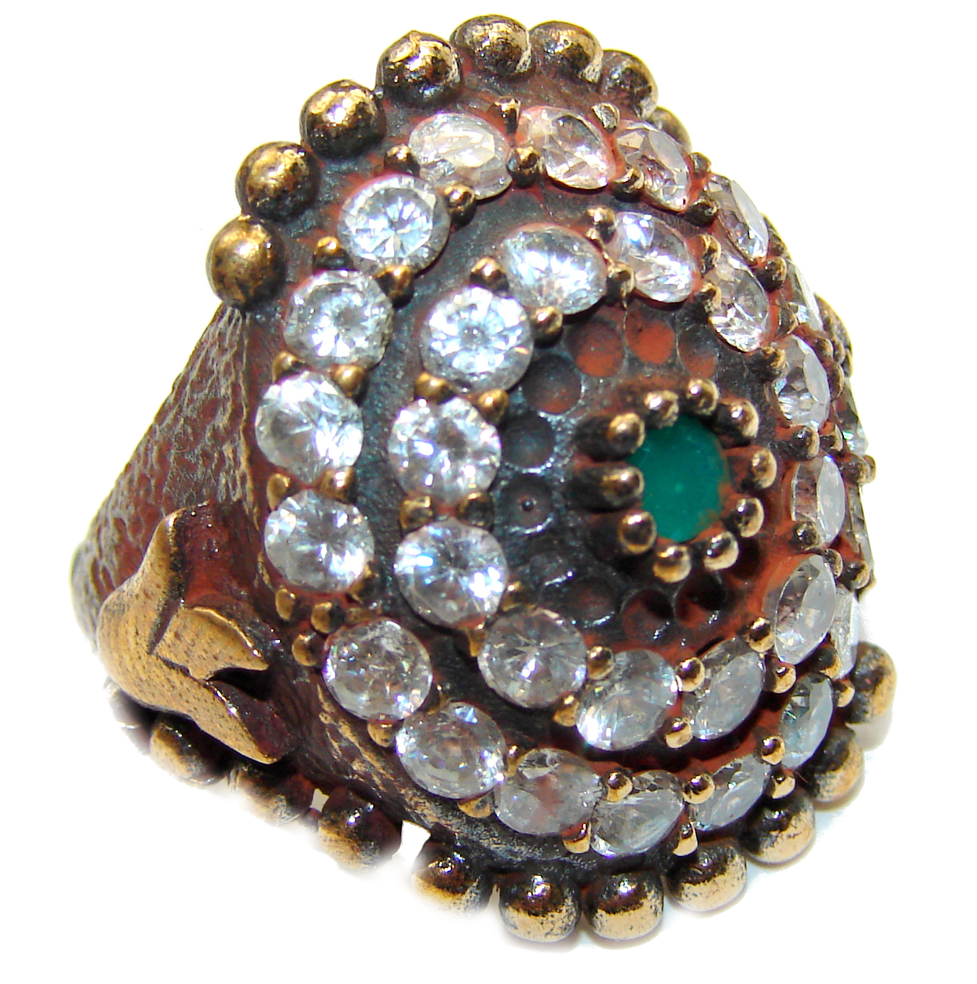 Victorian Style created Emerald & White Topaz Sterling Silver Ring s. 6