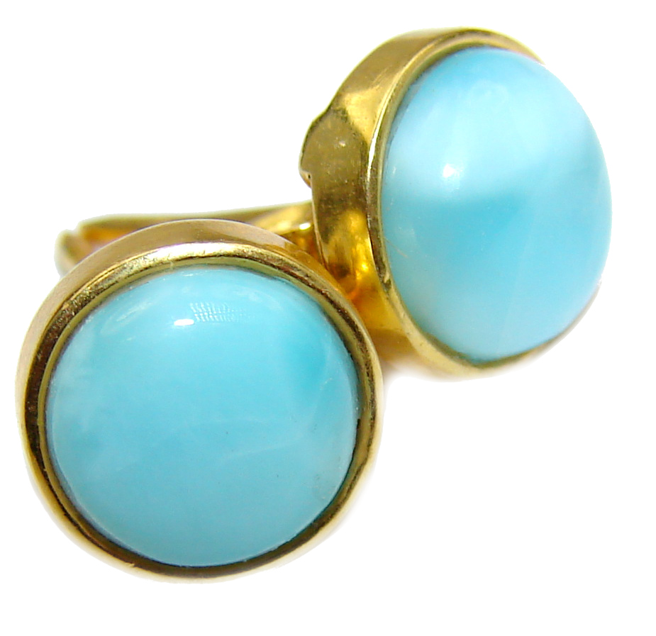 Precious genuine Blue Larimar 14K Gold over .925 Sterling Silver handmade earrings