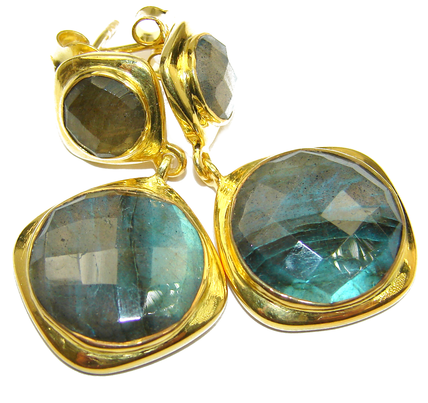 Perfect Labradorite 14K Gold over .925 Sterling Silver handmade earrings