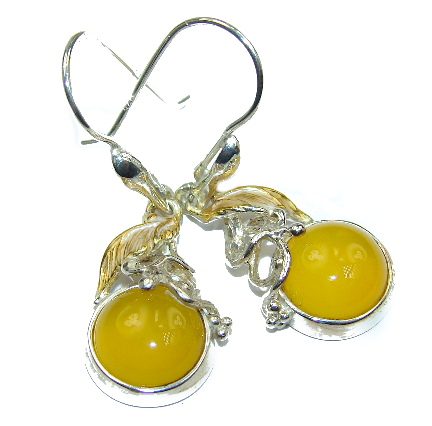 Genuine Baltic Amber two tones .925 Sterling Silver handcrafted Earrings