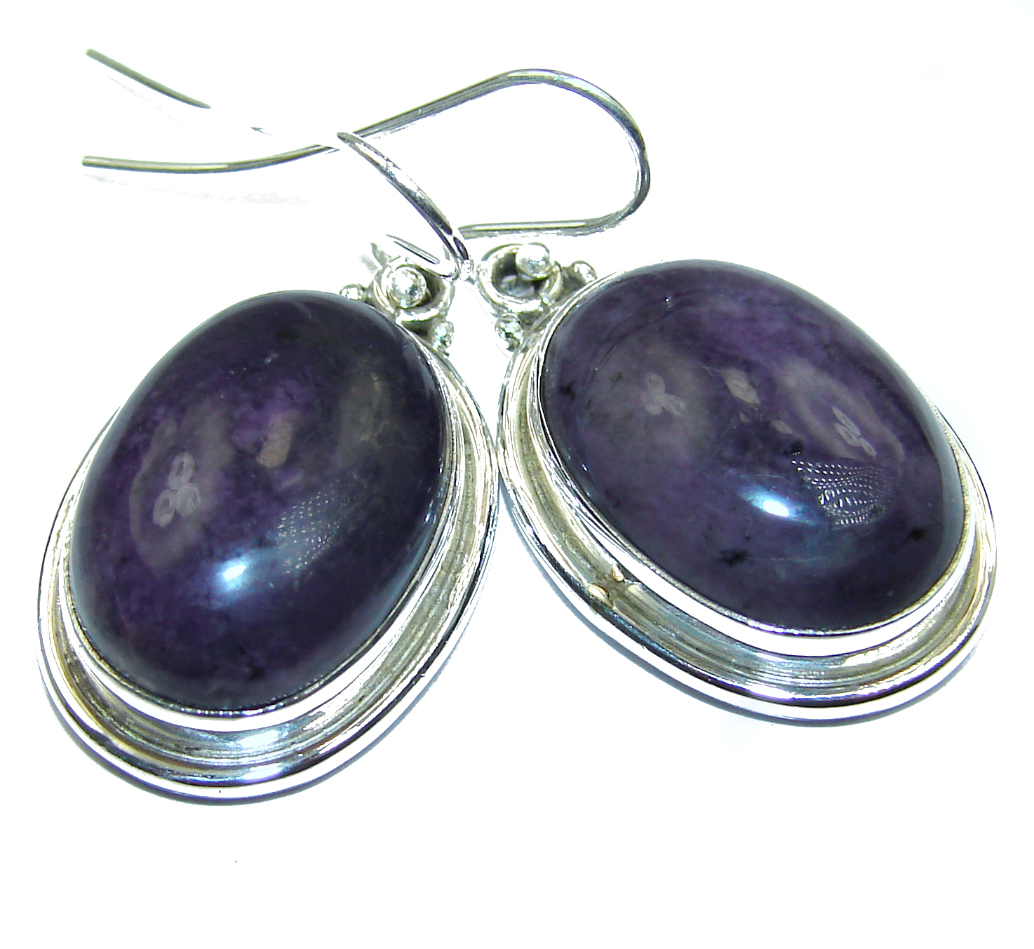 Precious genuine Charoite .925 Sterling Silver handmade earrings