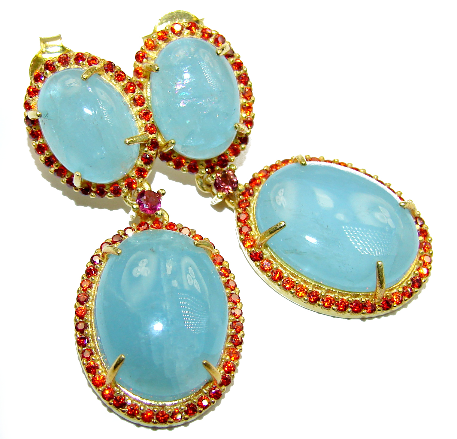 Fancy Style genuine Aquamarine Ruby .925 Sterling Silver handmade earrings