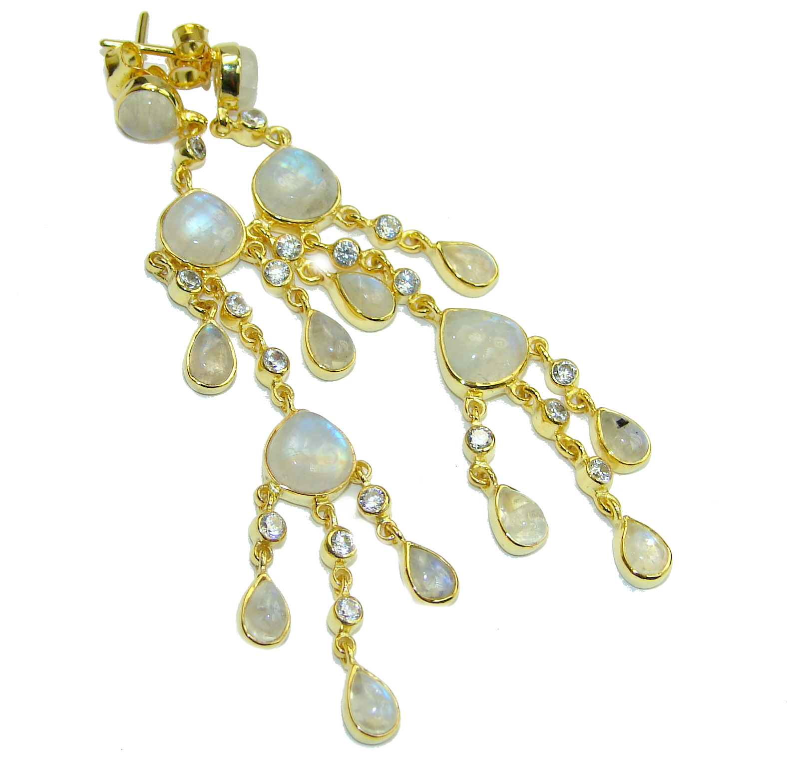Long Genuine Fire Moonstone 18K Gold over .925 Sterling Silver handcrafted Earrings