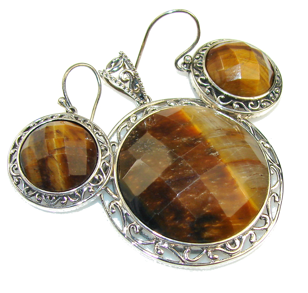 Amazing Design!! Brown Tigers Eye Sterling Silver / Set