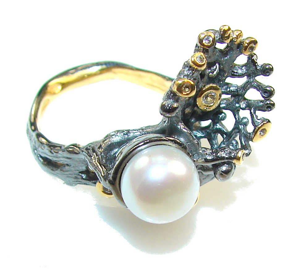 Gorgeous Italy Made, Rhodium Plated, 18ct Gold Plated Fresh Water Pearl Sterling Silver ring; 7 1/2