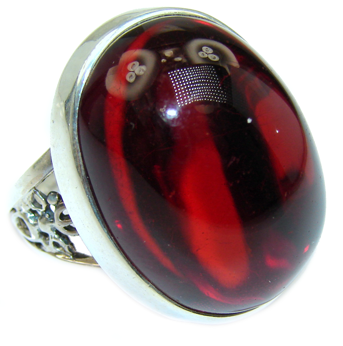 Spectacilar genuine Cognac Amber .925 Sterling Silver ring s. 9