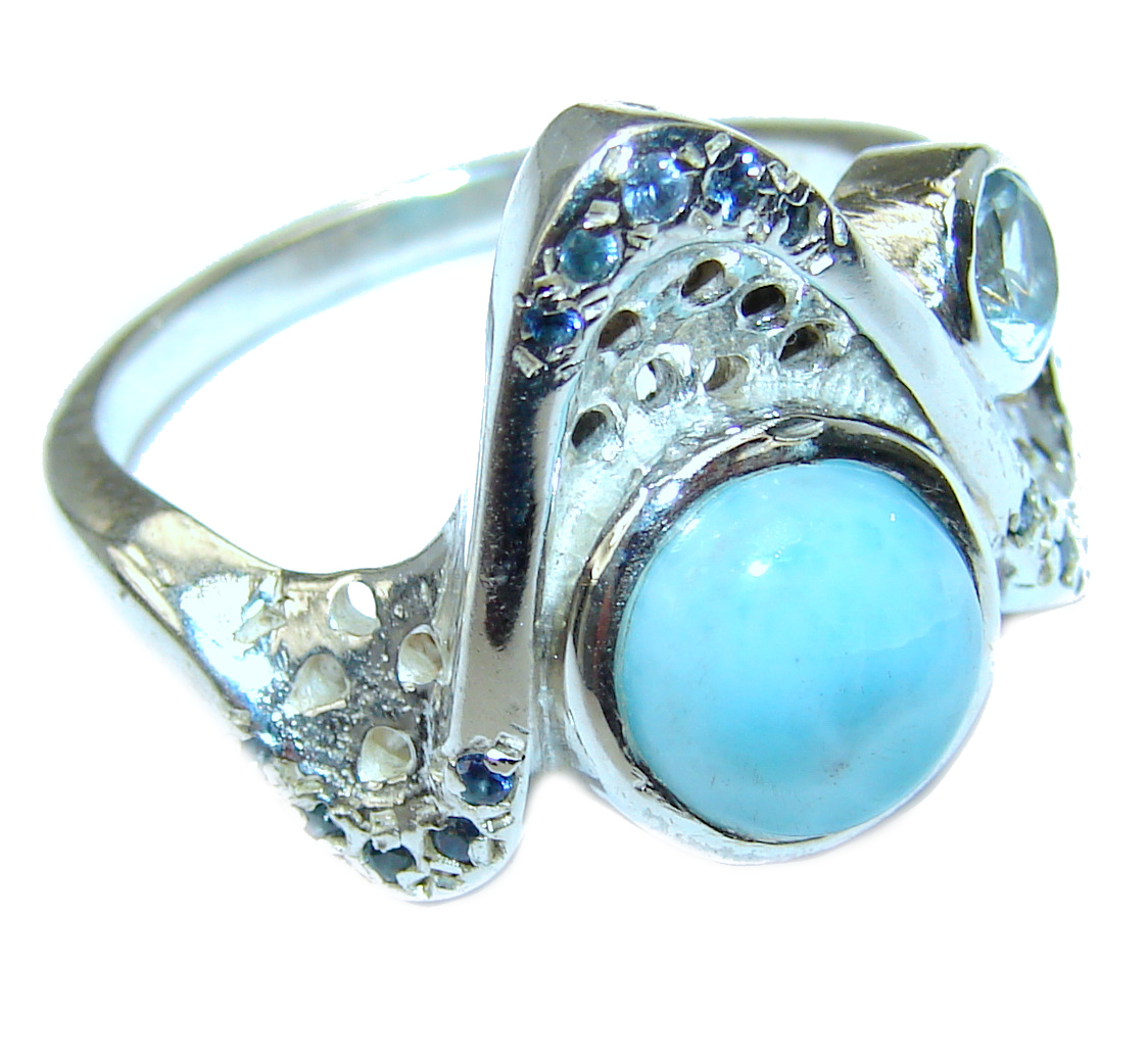 Vintage Design Natural Larimar .925 Sterling Silver handcrafted Ring s. 8 1/4