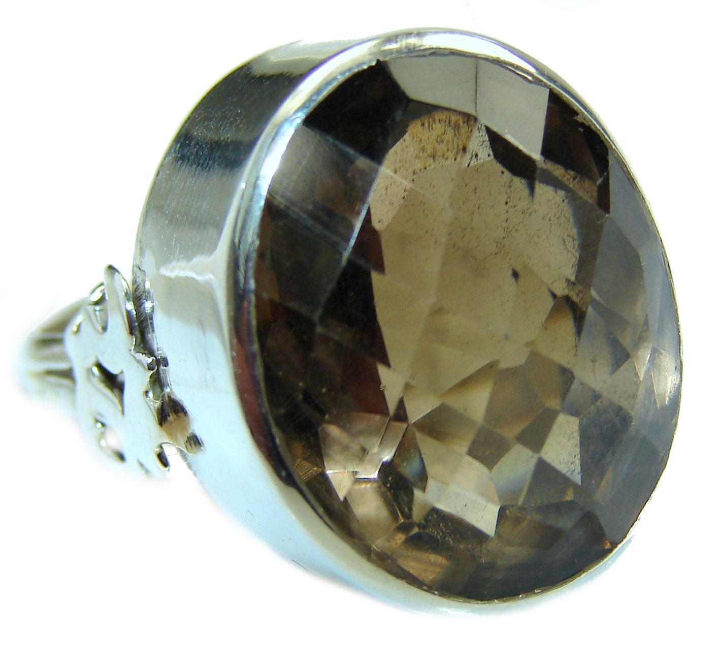 Bold Champagne Smoky Topaz .925 Sterling Silver Ring size 9 1/2