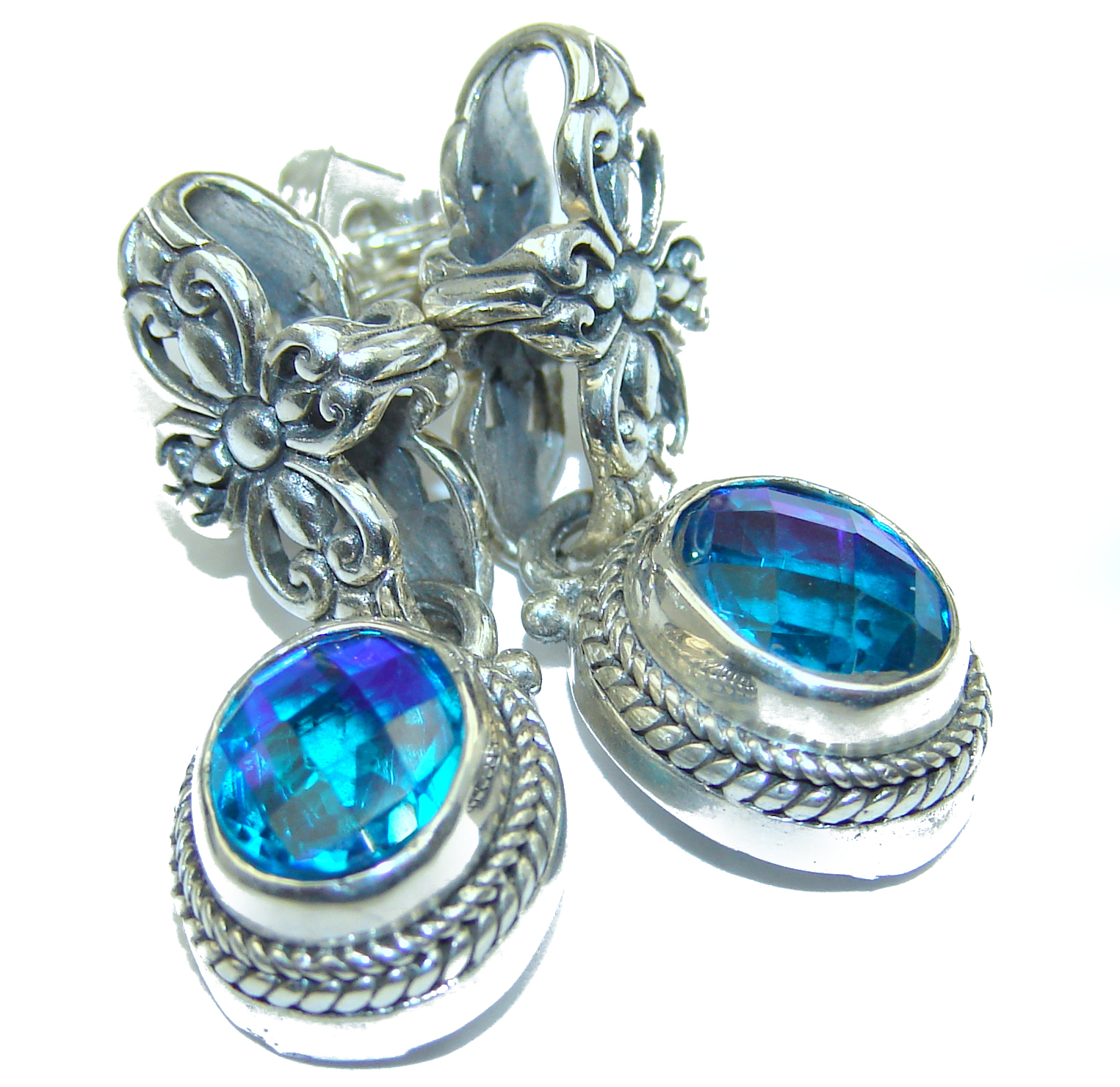 Stunning .925 Sterling Silver Bali handmade earrings
