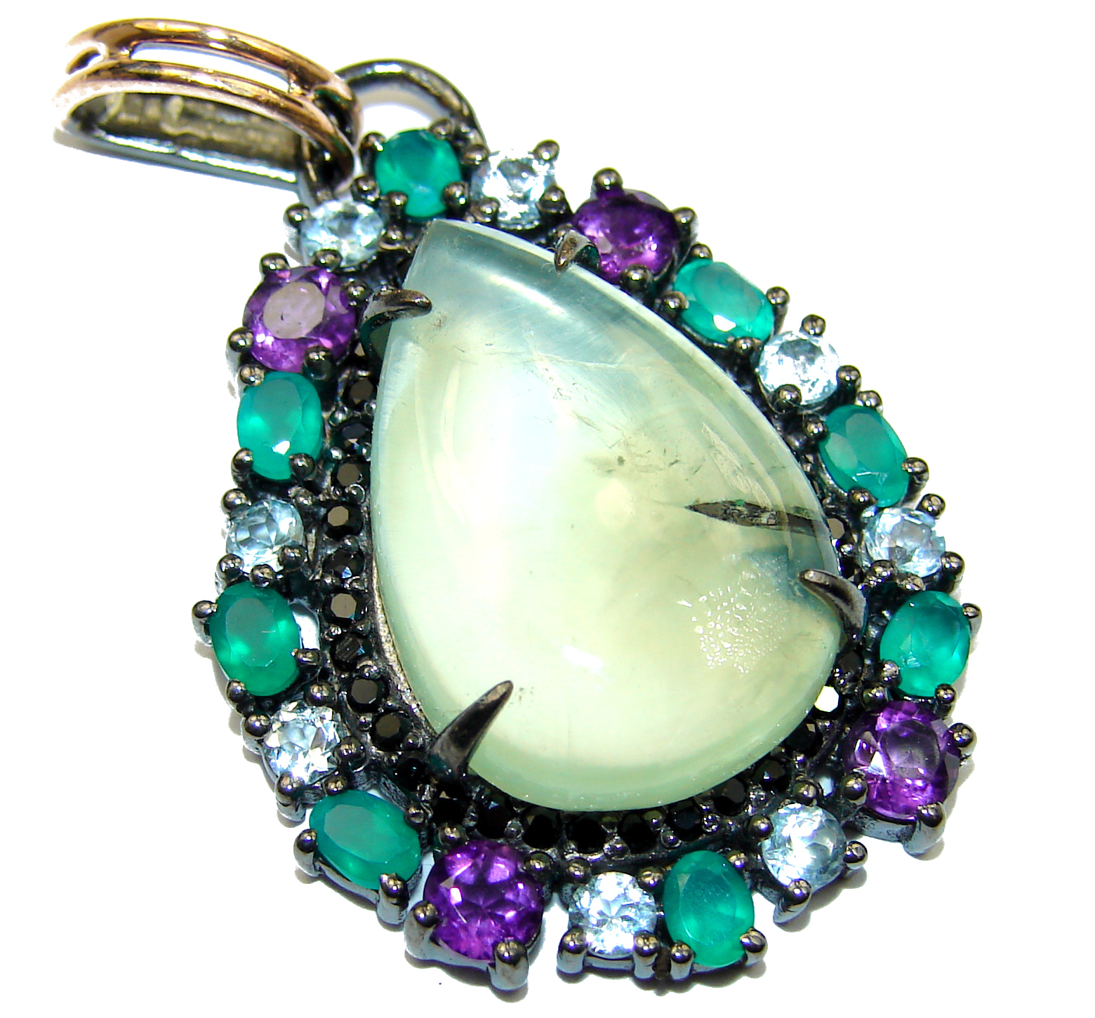 Authentic Moss Prehnite Rhodium over .925 Sterling Silver handmade pendant