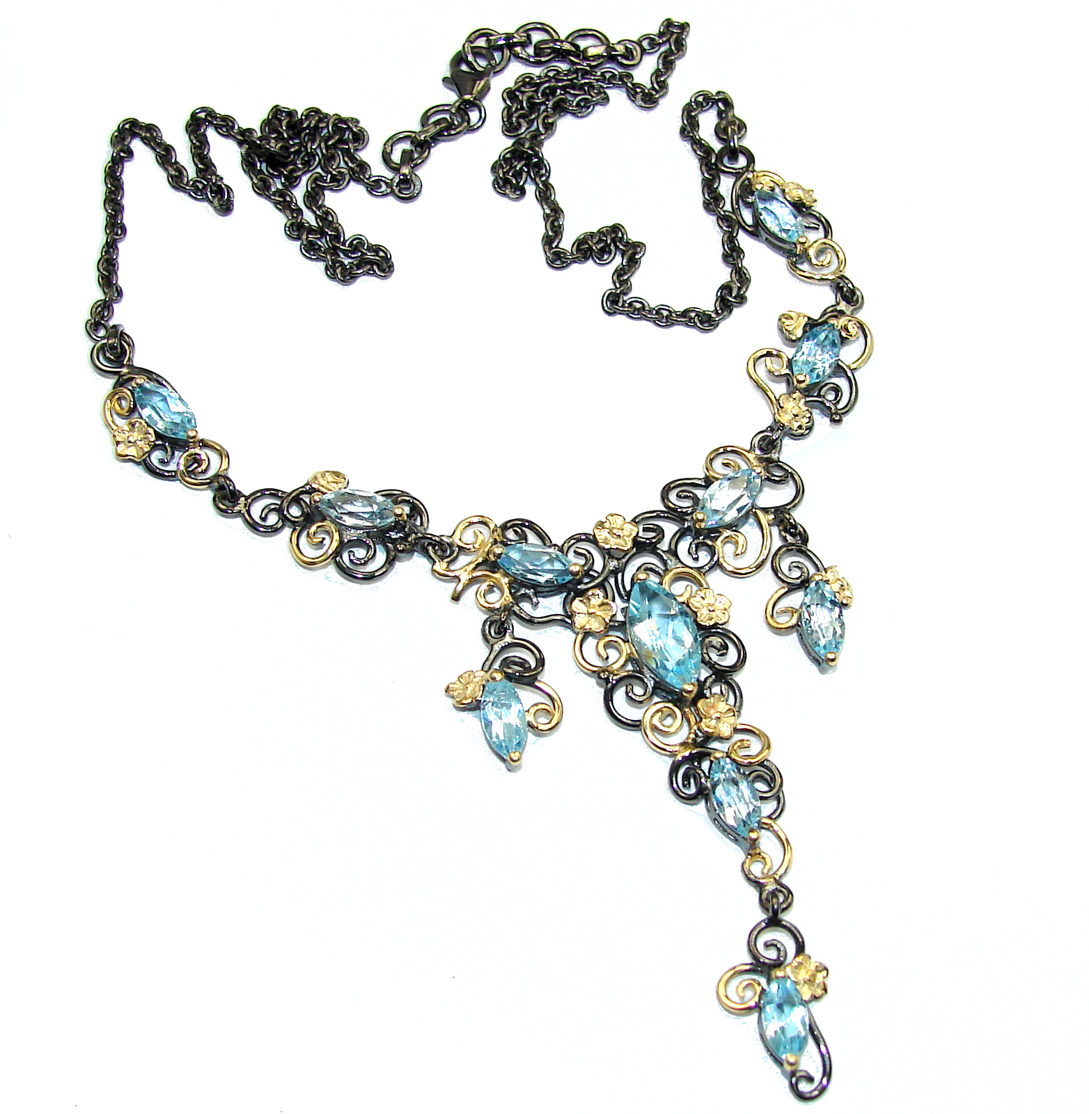 Andromeda Swiss Blue Topaz 14K Gold Rhodium over .925 Sterling Silver handcrafted necklace
