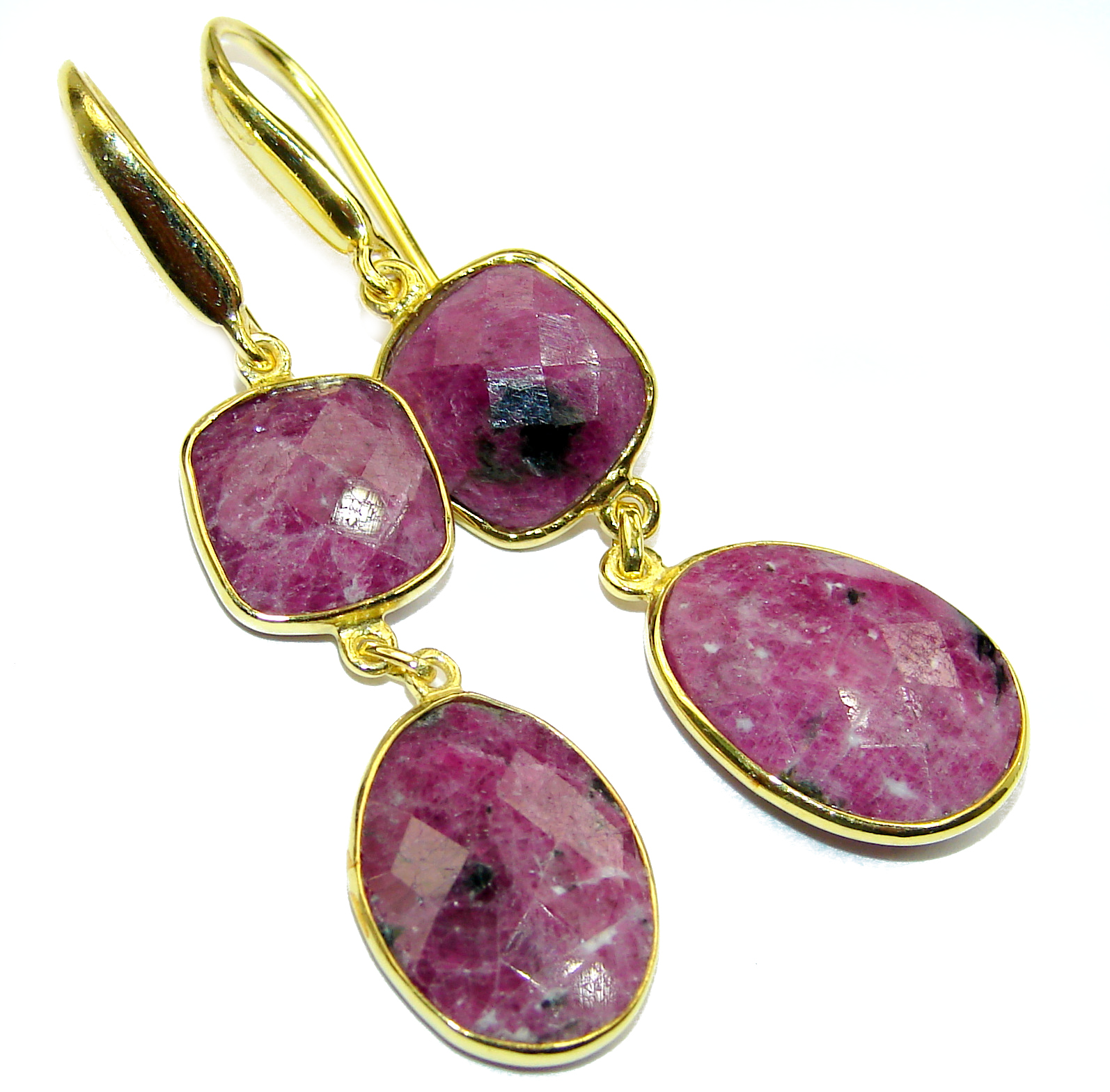 Trendy Ruby 14K Gold over .925 Sterling Silver handmade earrings