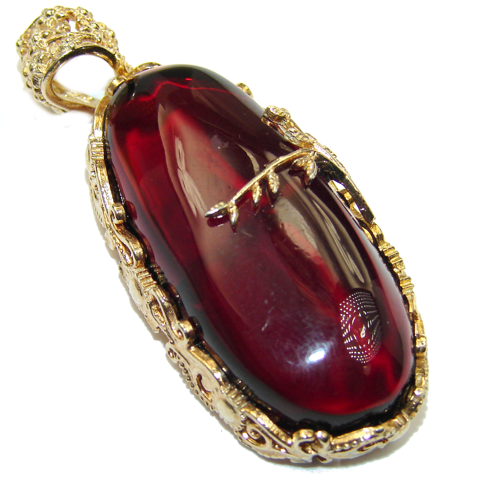 Vintage Style Cognac Natural Baltic Amber 14K Gold over .925 Sterling Silver handmade Pendant