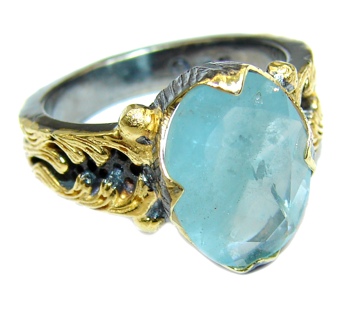 Antique Design Blue Aquamarine .925 Sterling Silver handmade ring s. 6 1/4