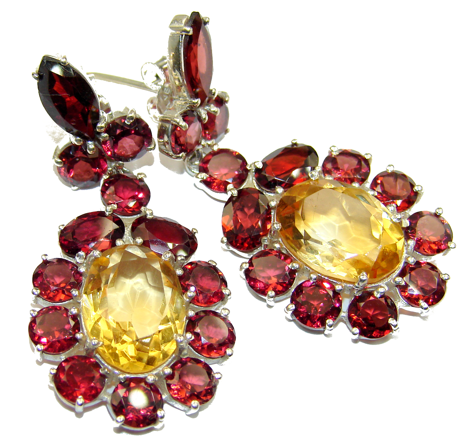 Spectacular Authentic Citrine Garnet .925 Sterling Silver handmade earrings
