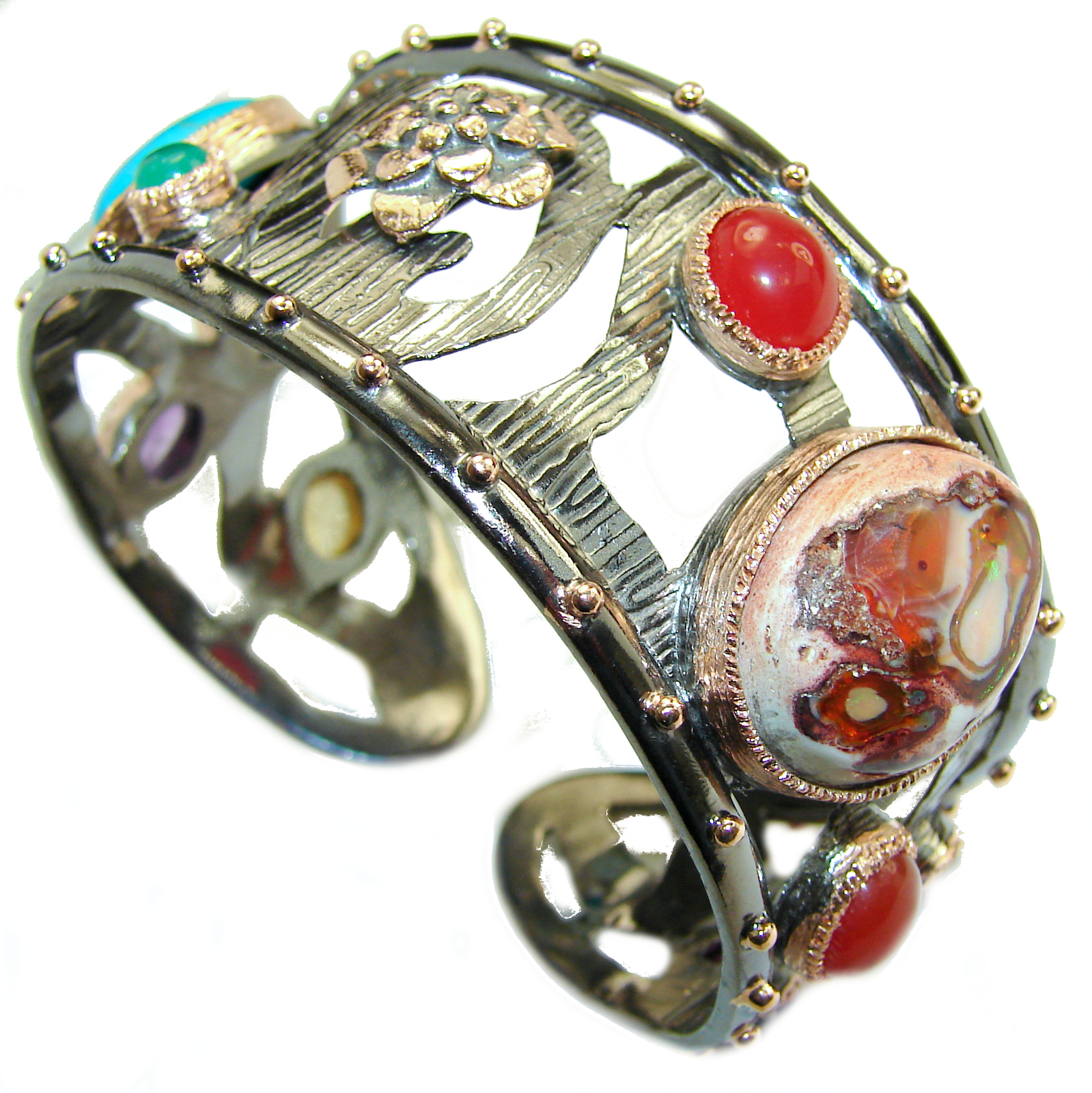 Aura Of Positive Energy Natural Multistone .925 Sterling Silver handcrafted Bracelet / Cuff