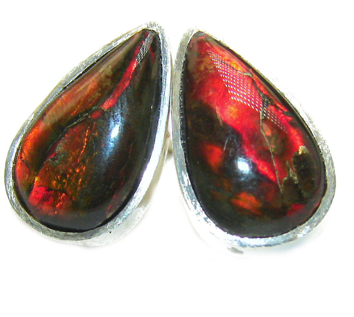 Red Aura Fire Ammolite .925 Sterling Silver handcrafted earrings