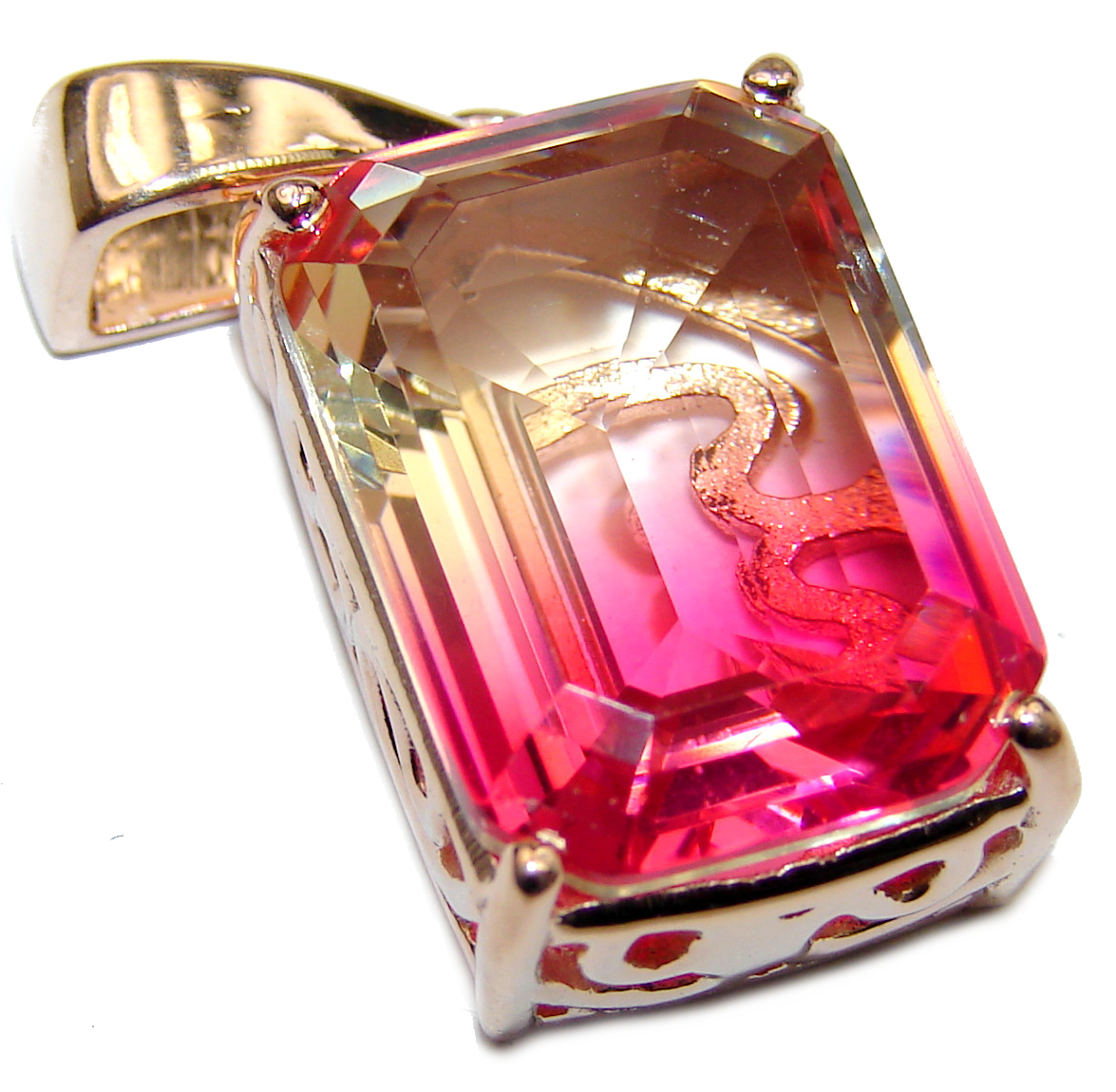 Deluxe Octagon cut Tourmaline color Topaz 14K Gold over .925 Sterling Silver handmade Pendant