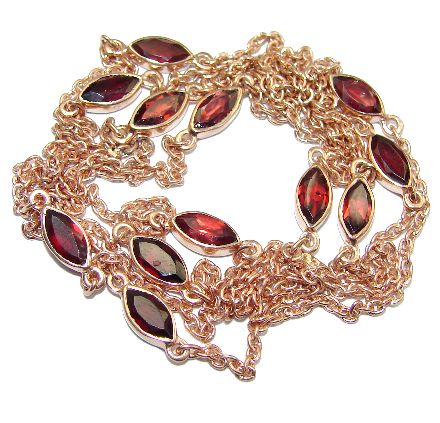 36 inches Genuine Garnet Rose Gold over .925 Sterling Silver handmade Station necklace