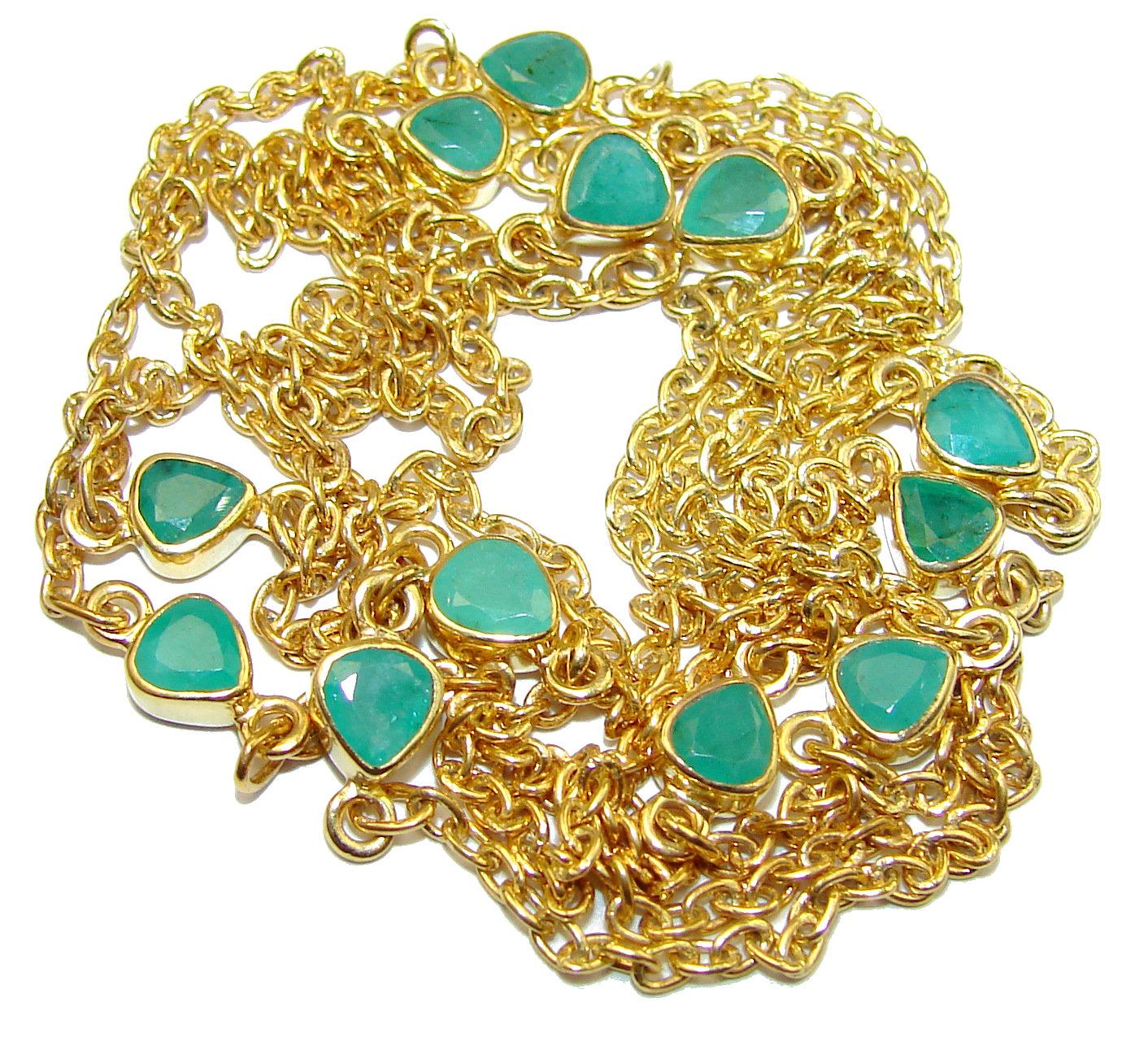 36 inches Green Emerald 14K Gold over .925 Sterling Silver handcrafted necklace