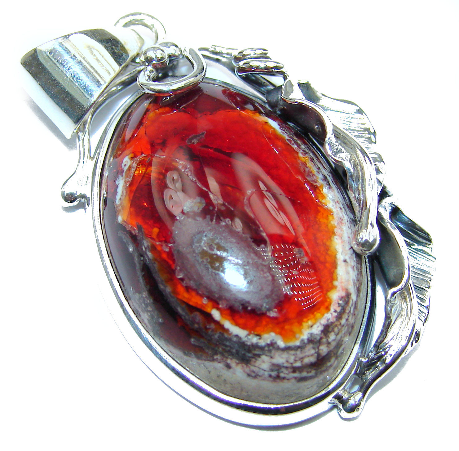 Floral Design Natural Mexican Fire Opal .925 Sterling Silver handmade Pendant