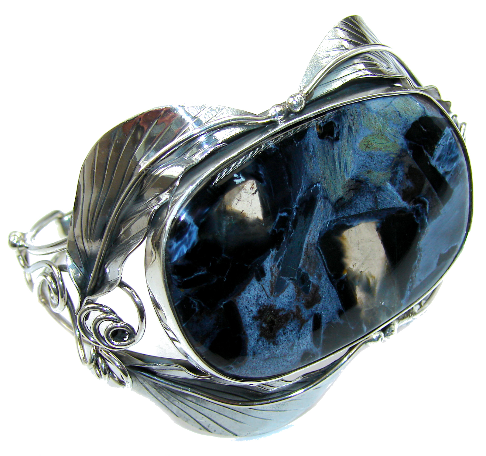 Huge Genuine Black Pietersite .925 Sterling Silver handmade Bracelet Cuff