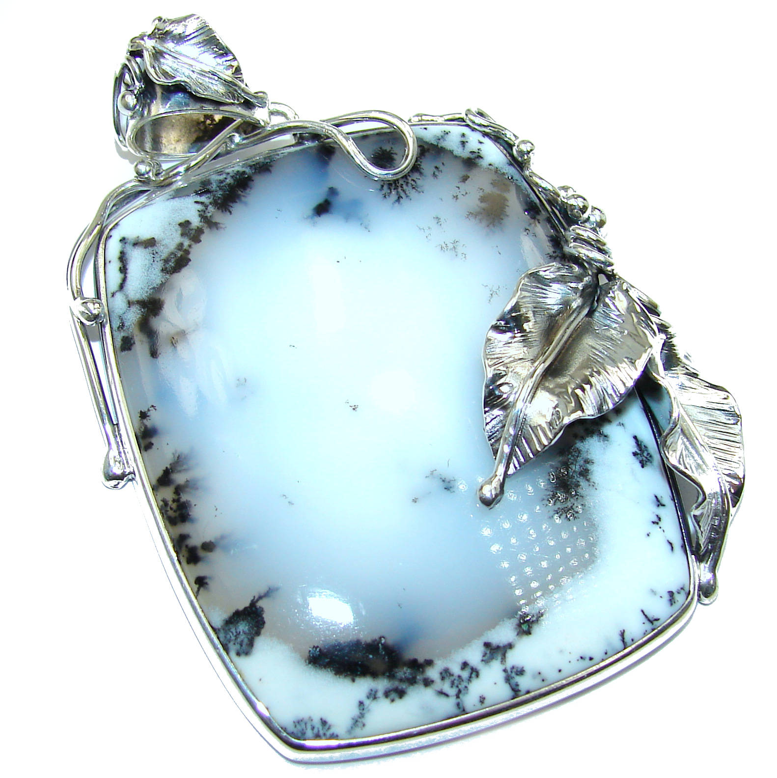 40 grams! Perfect quality Dendritic Agate .925 Sterling Silver handmade Pendant