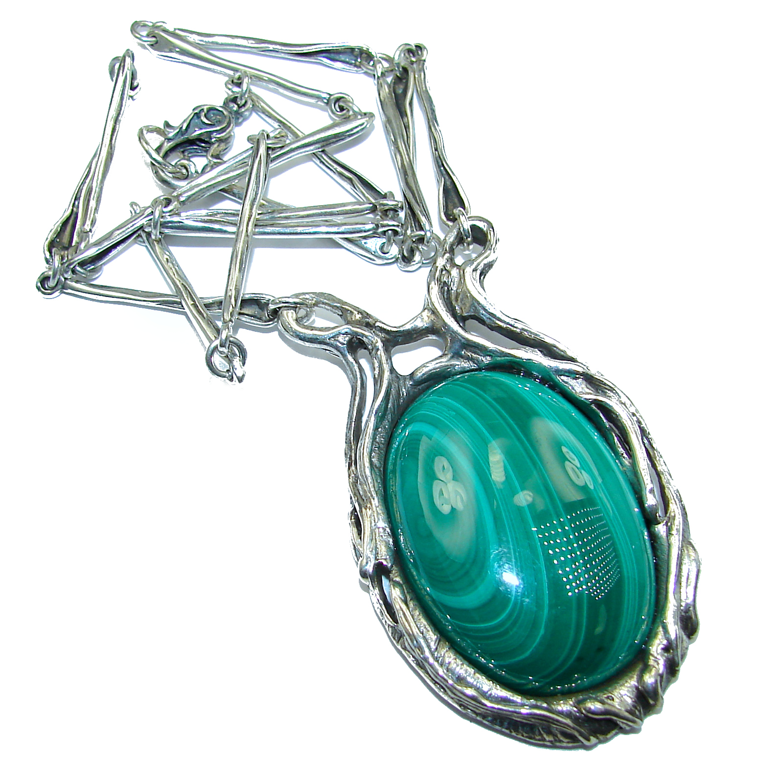 Very Unusual authentic Malachite .925 Sterling Silver handmade necklace