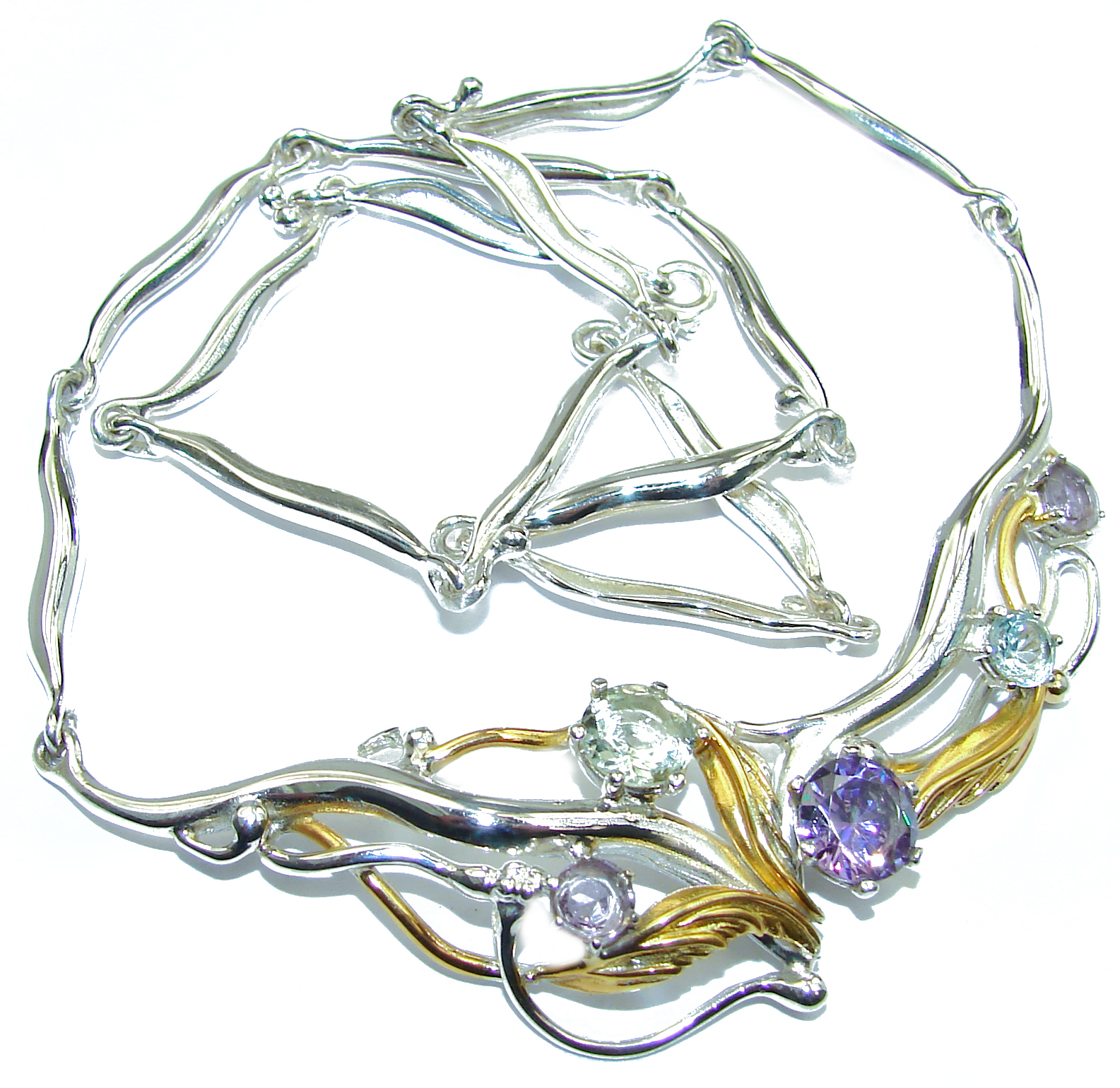 Fields Of Summer Natural Multigem Gold over Highly polished .925 Sterling Silver Necklace