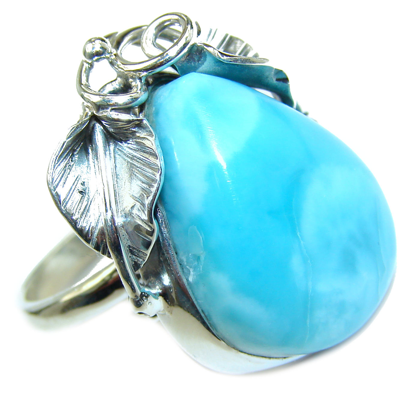 Vintage Design Natural Larimar .925 Sterling Silver handcrafted Ring s. 8 adjustable