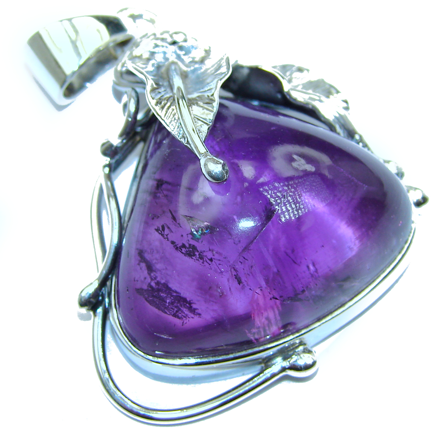 Her Majesty Natural 75 ct Amethyst .925 Sterling Silver handmade Pendant