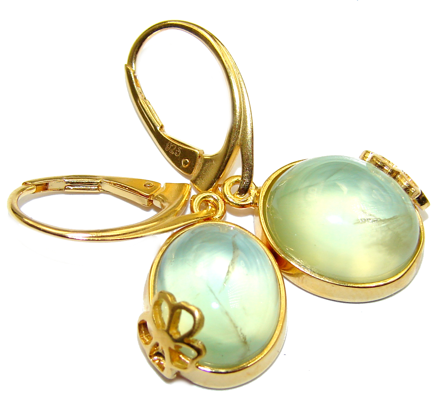 Sublime Authentic Moss Prehnite 14K Gold over .925 Sterling Silver handmade earrings
