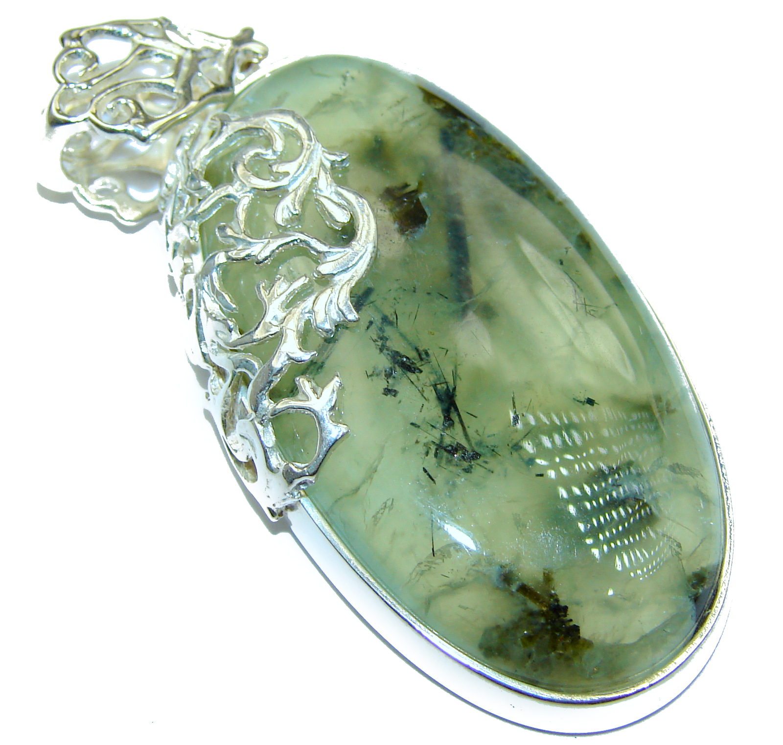 Pure Perfection Natural Moss Prehnite .925 Sterling Silver handmade Pendant