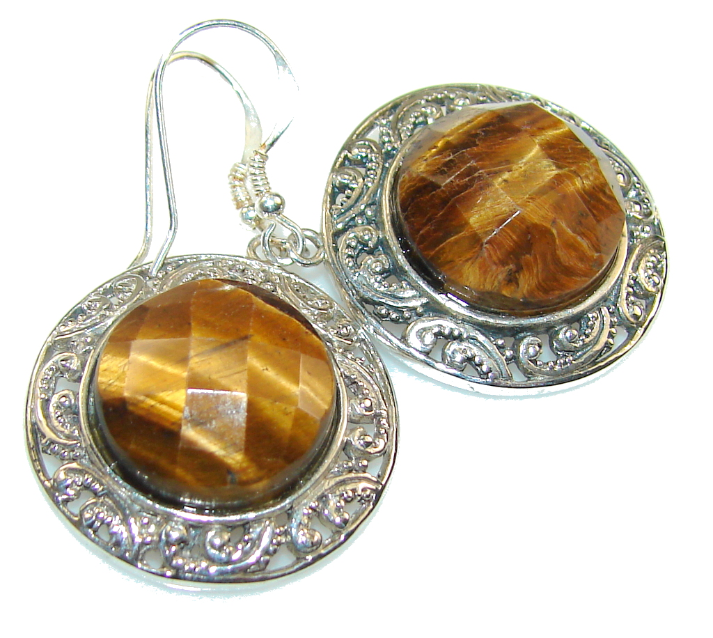 Fantasy! Brown Tigers Eye Sterling Silver earrings