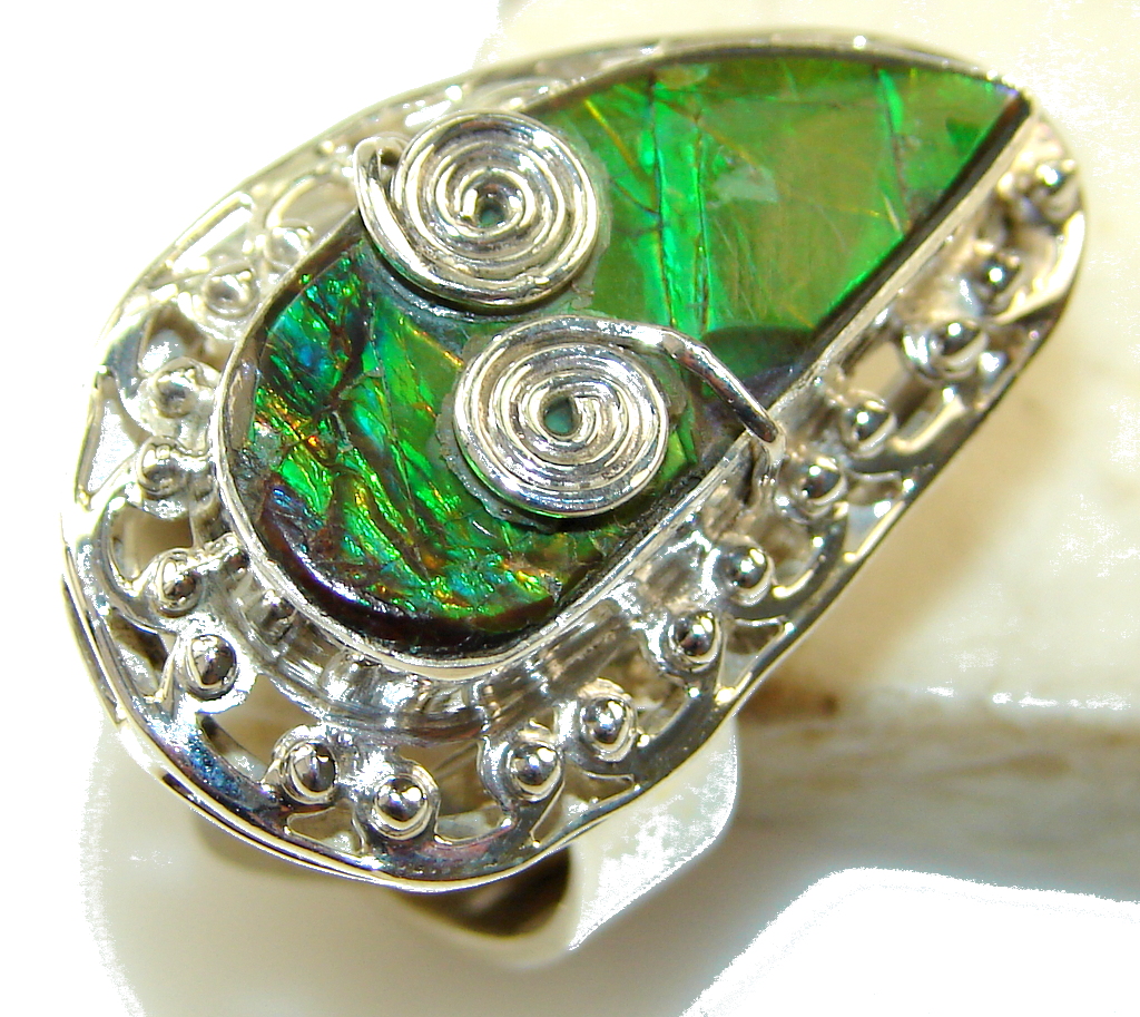 Beautiful Green Ammolite Sterling Silver ring s. 9