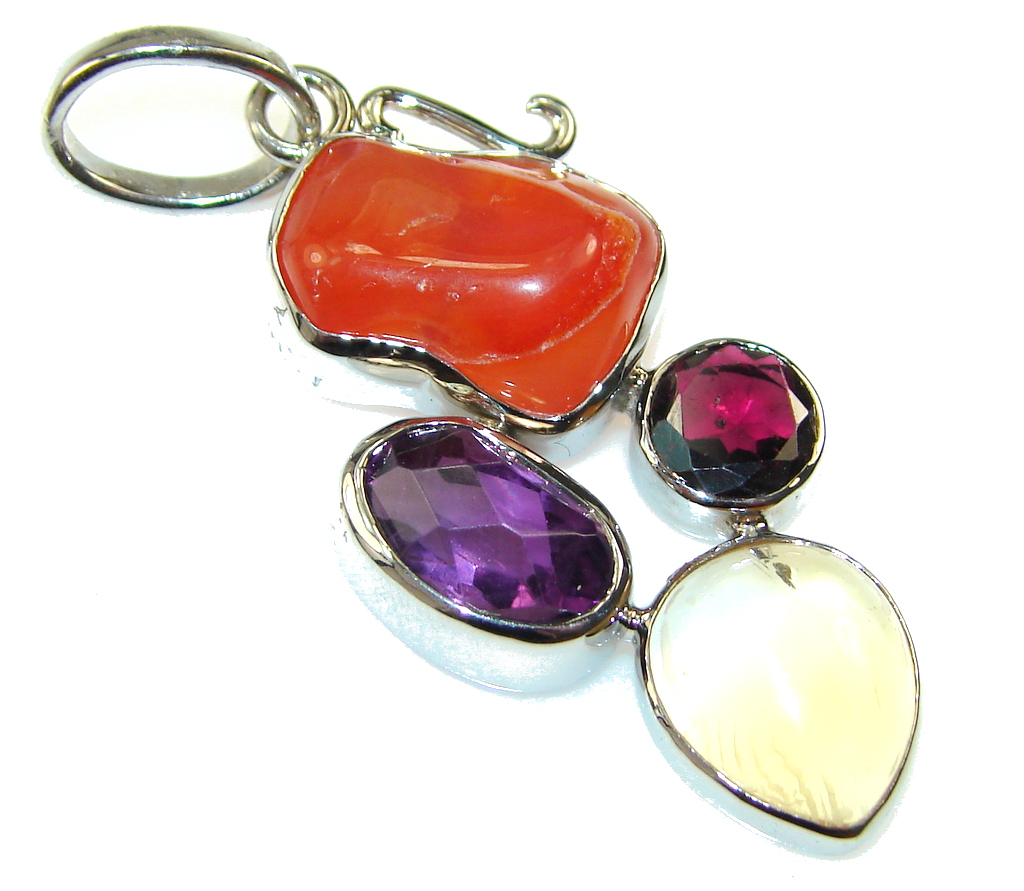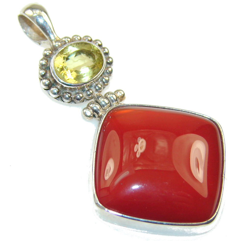 Precious Orange Carnelian Sterling Silver Pendant