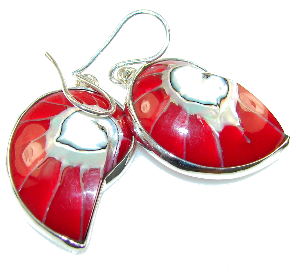 Lovely Red Ocean Shell Sterling Silver earrings