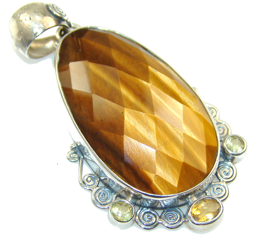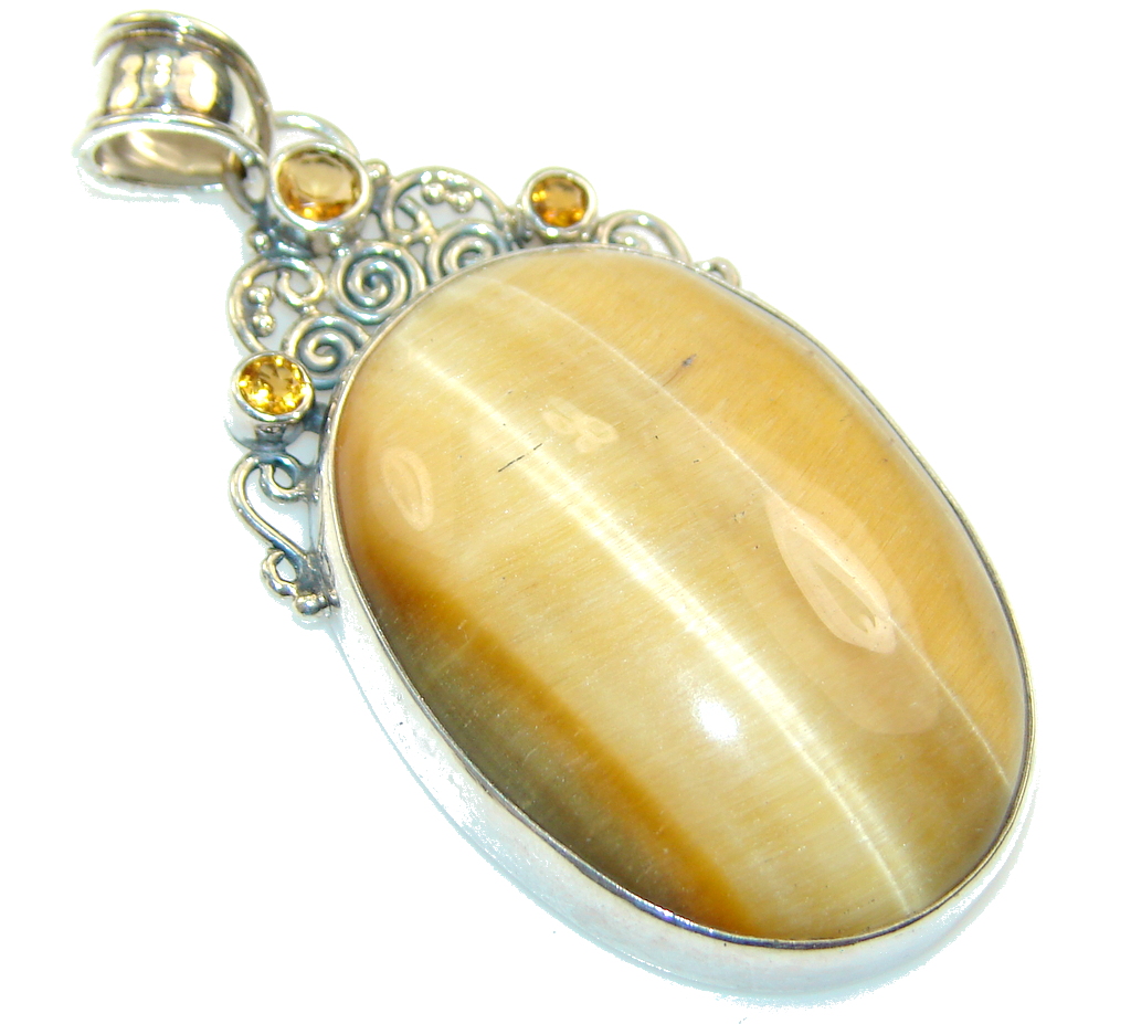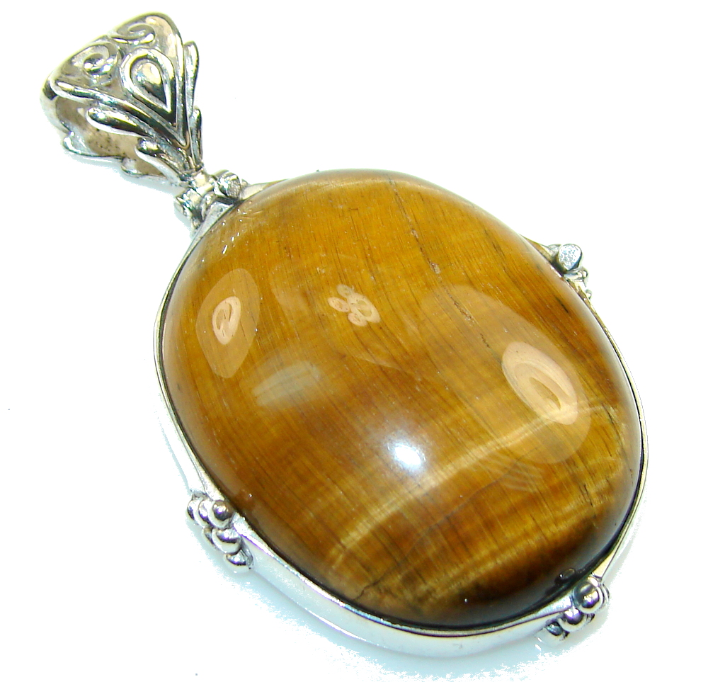 Fabulous Light Brown Tigers Eye Sterling Silver Pendant