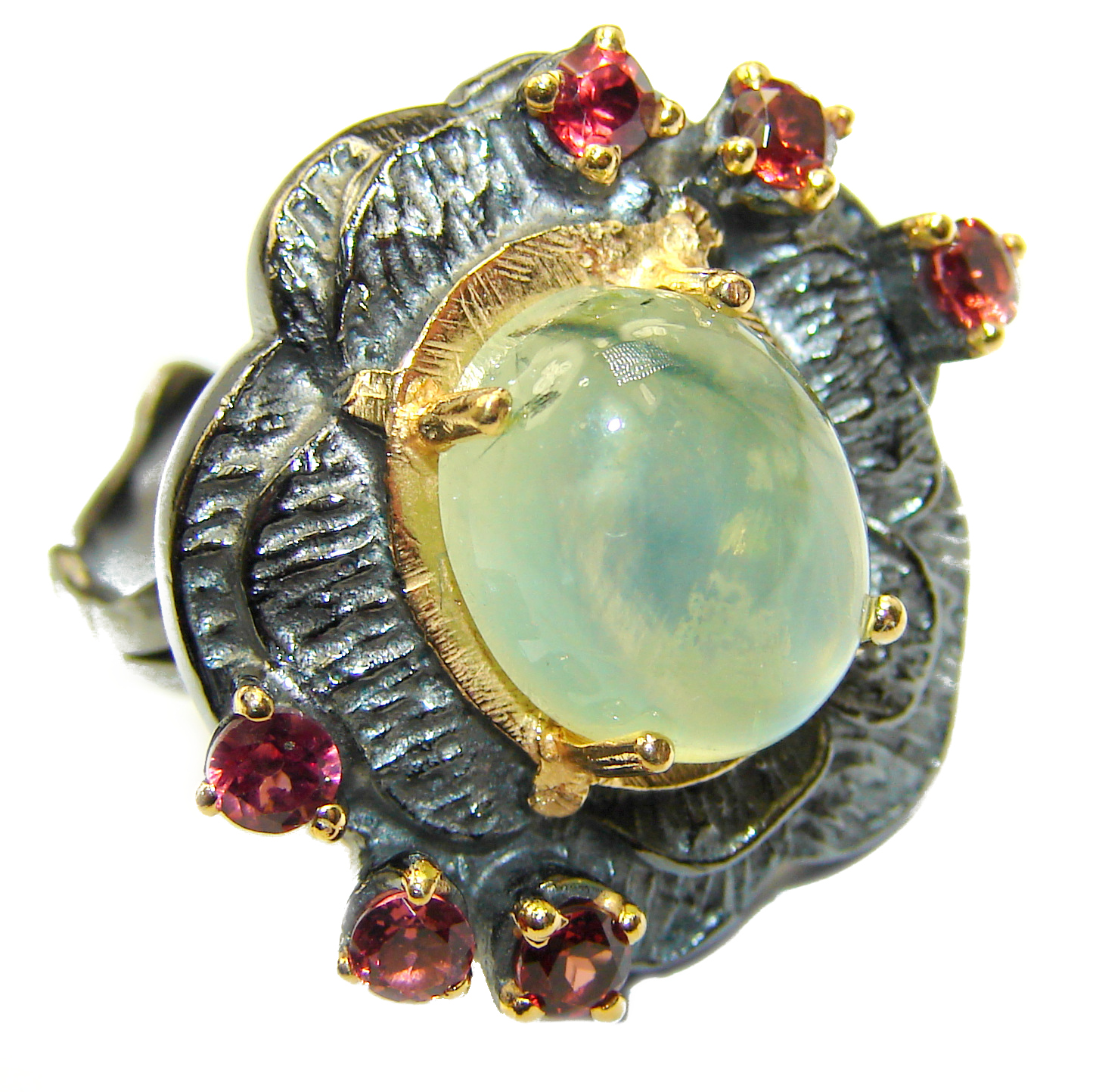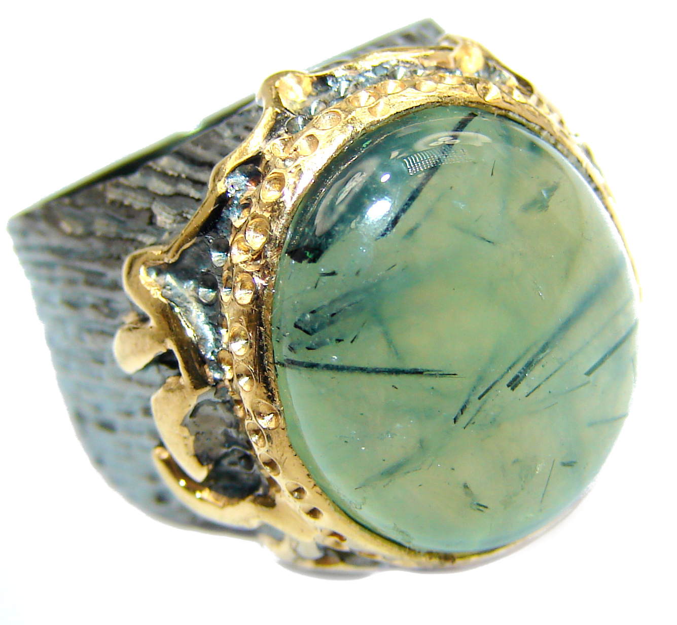 Chunky Natural Moss Prehnite 14K Gold over .925 Sterling Silver handmade ring s. 7