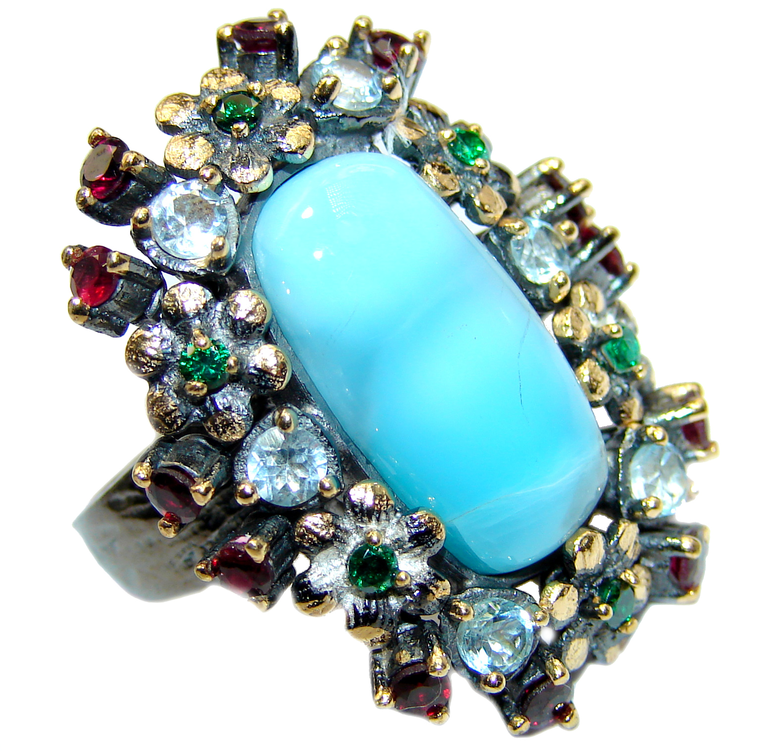 Natural Larimar Emerald Black Rhodium over .925 Sterling Silver handcrafted Ring s. 6