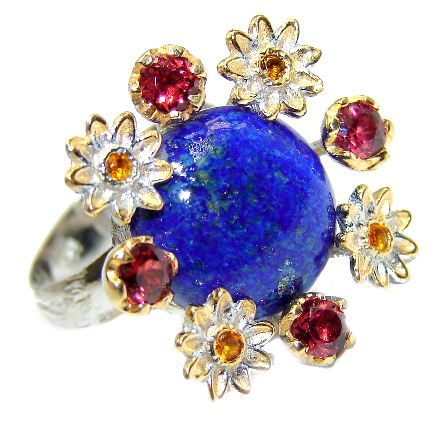 Natural Lapis Lazuli 14K Gold over .925 Sterling Silver handcrafted ring size 6 adjustable