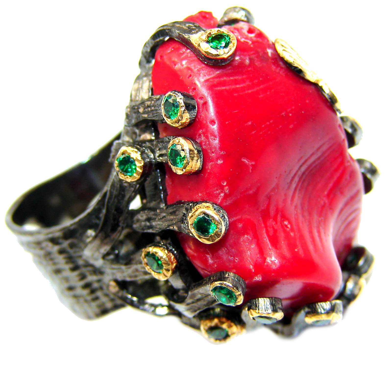 Natural Fossilized Coral 14K Gold over .925 Sterling Silver handmade ring s. 7 1/2