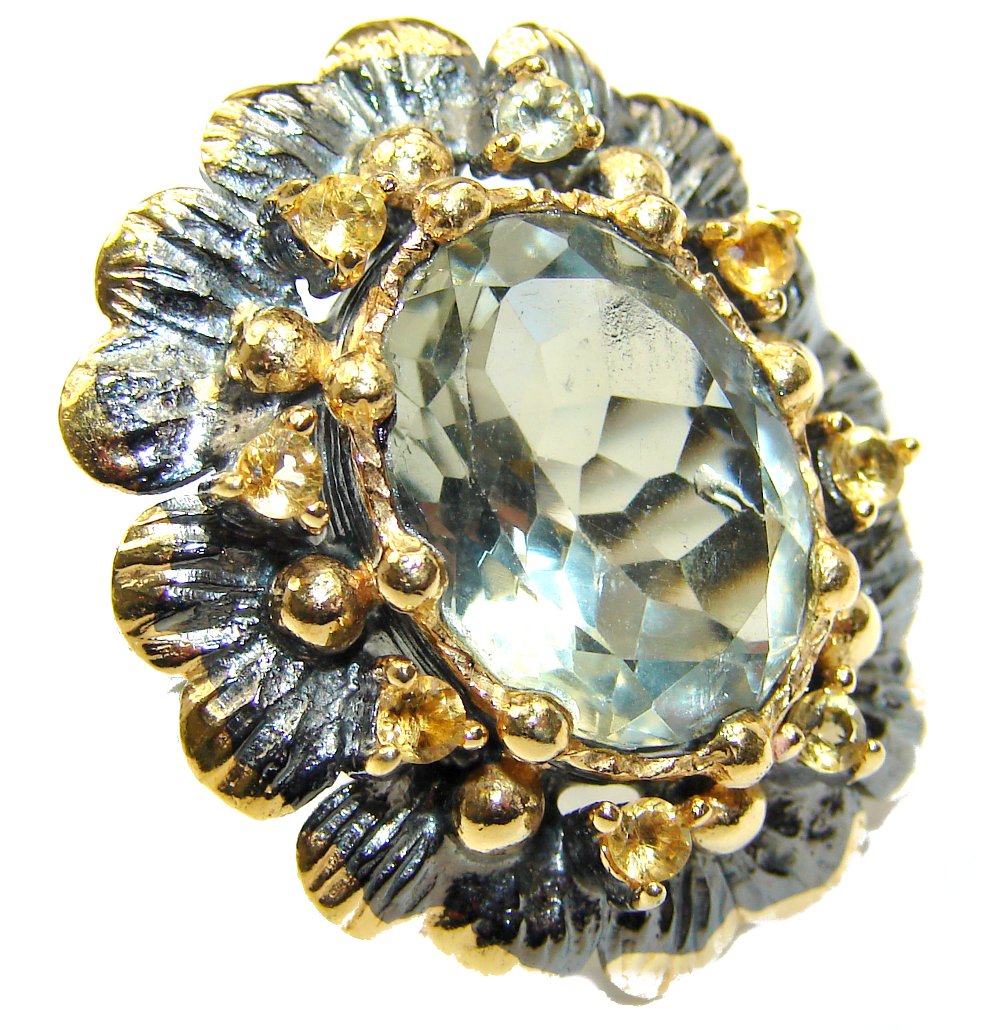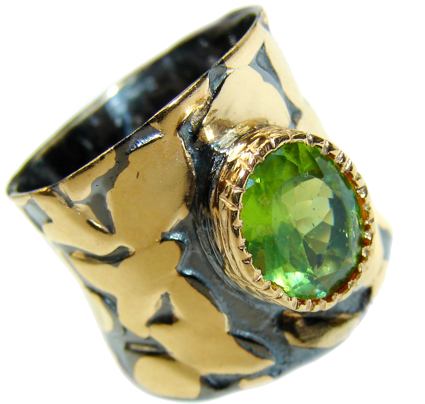 Vintage Design Green Amethyst 14K Gold over .925 Sterling Silver handmade Cocktail Ring s. 7
