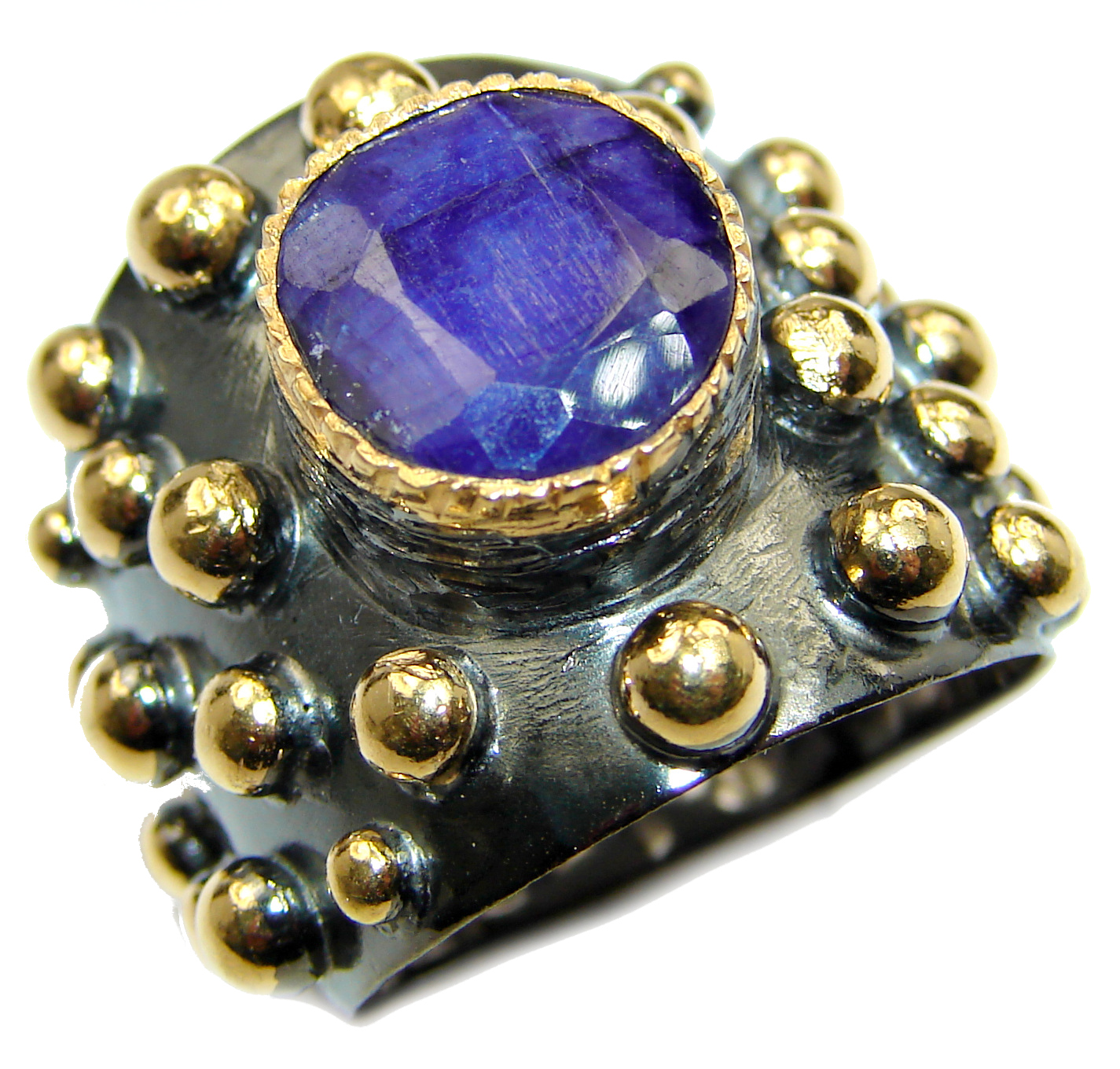 Vintage Style Sapphire 14K Gold over .925 Sterling Silver handcrafted ring; s. 8